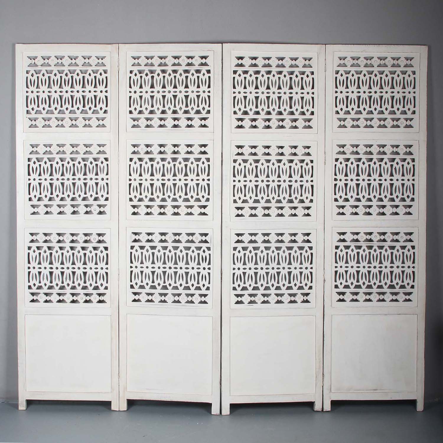 Hoogwaardige scheidingswand van beschilderd hout in shabby chic-stijl.