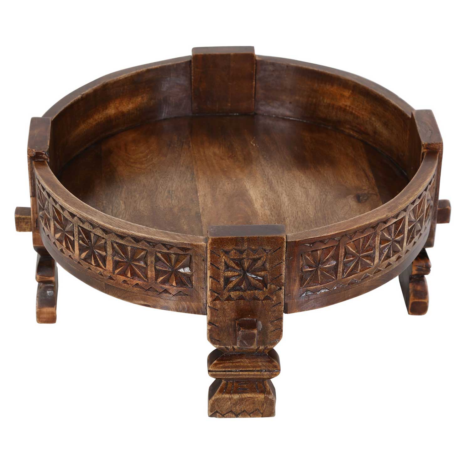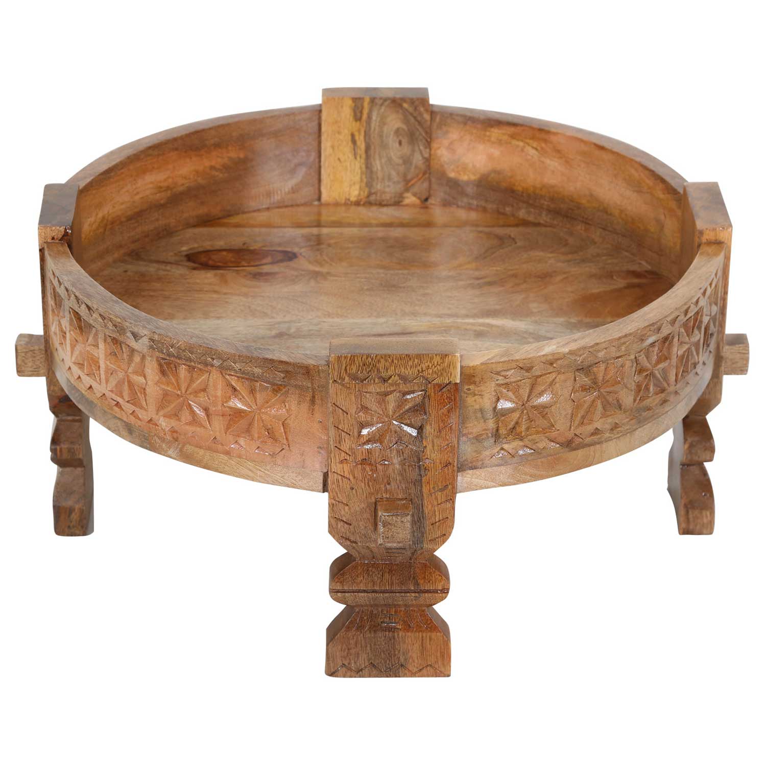 Wat is een Chakki-tafel? De Chakki-tafel is bekend uit de Indiase cultuur. Oorspronkelijk werd dit oosterse meubelstuk gebruikt in huizen met steenmolens en bij de verwerking van graan. De korrels werden voorgesorteerd en tot meel gemalen. Tegenwoordig is deze bijzettafel vooral beroemd om zijn unieke uiterlijk en brengt hij een etnische boho-touch in uw huis.