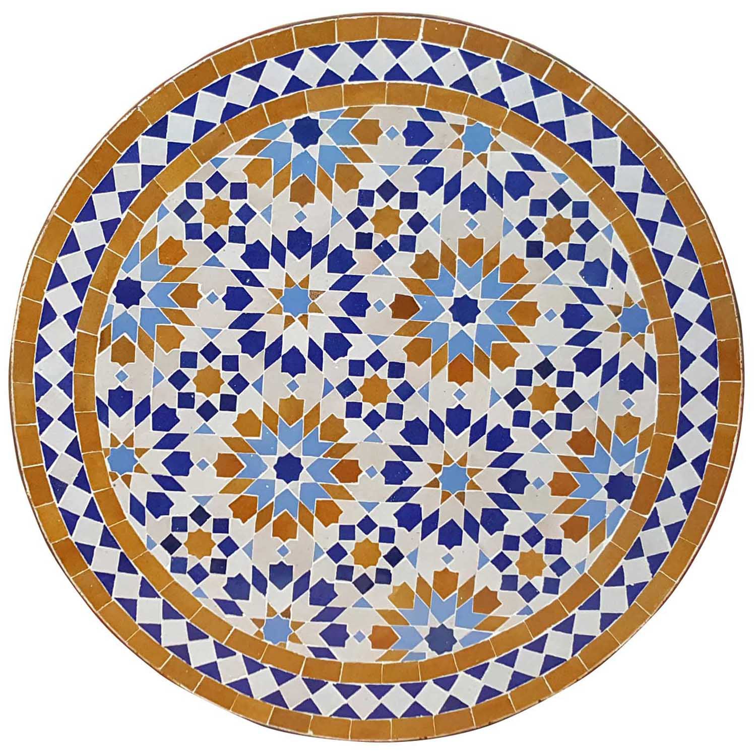 Bistrotisch 60 cm – Kaffeetisch mit marokkanischem Mosaik in Blau-Ocker