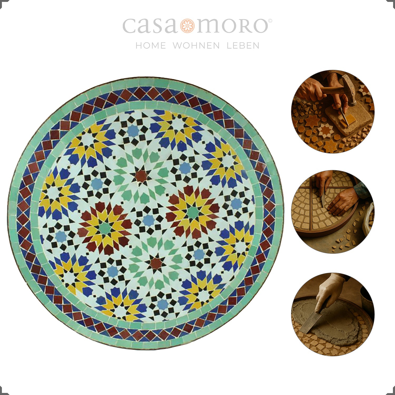 Bistrotisch Rund 60 cm – marokkanischer Mosaiktisch in kräftigen Farben