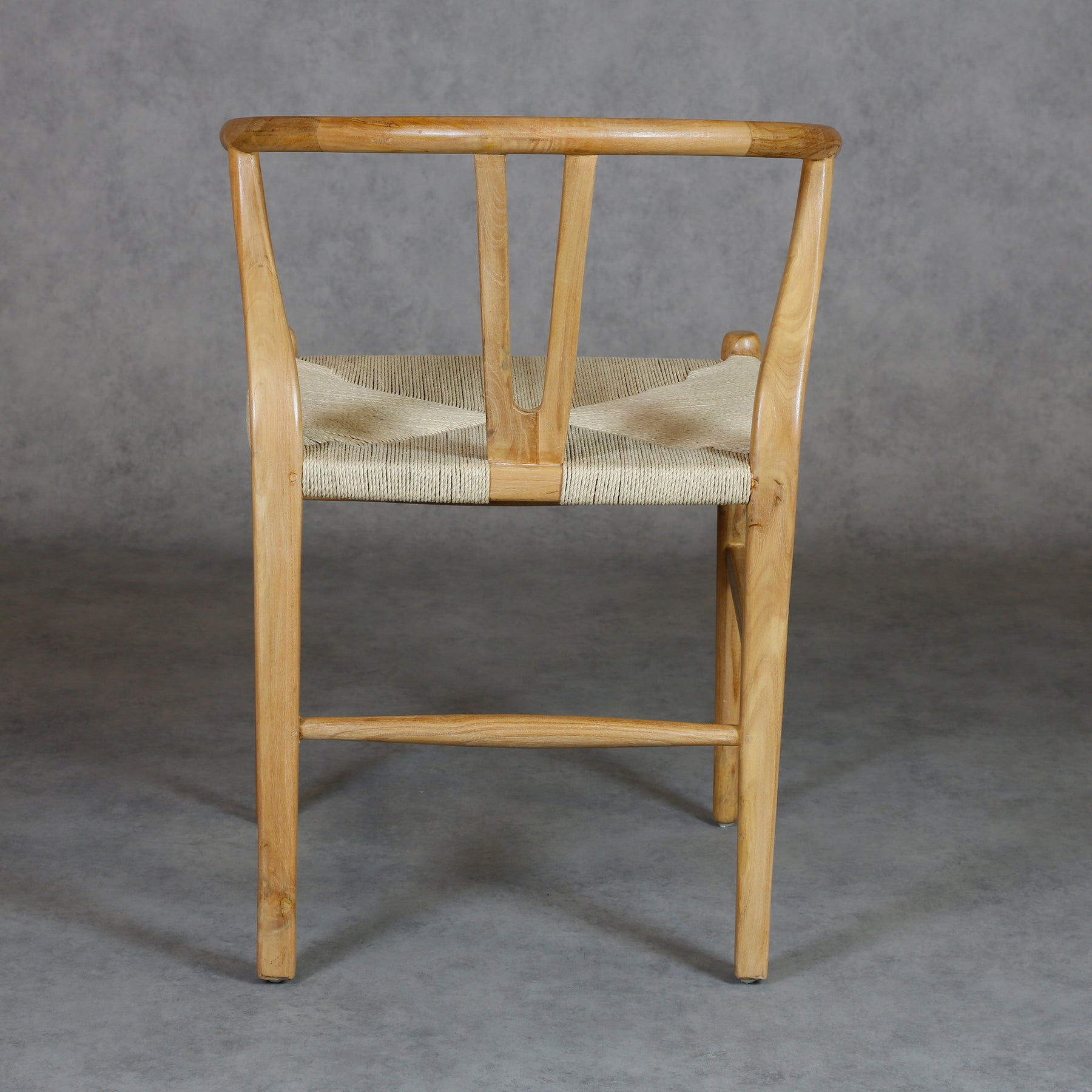Funktionale Natürlichkeit: Die Stühle vereinen die Schönheit natürlicher Materialien wie robustem Holz und handgewebtem Seilgeflecht mit praktischer Vielseitigkeit. Teak-Stühle, die am Esstisch bewussten Stil und Eleganz ausstrahlen
