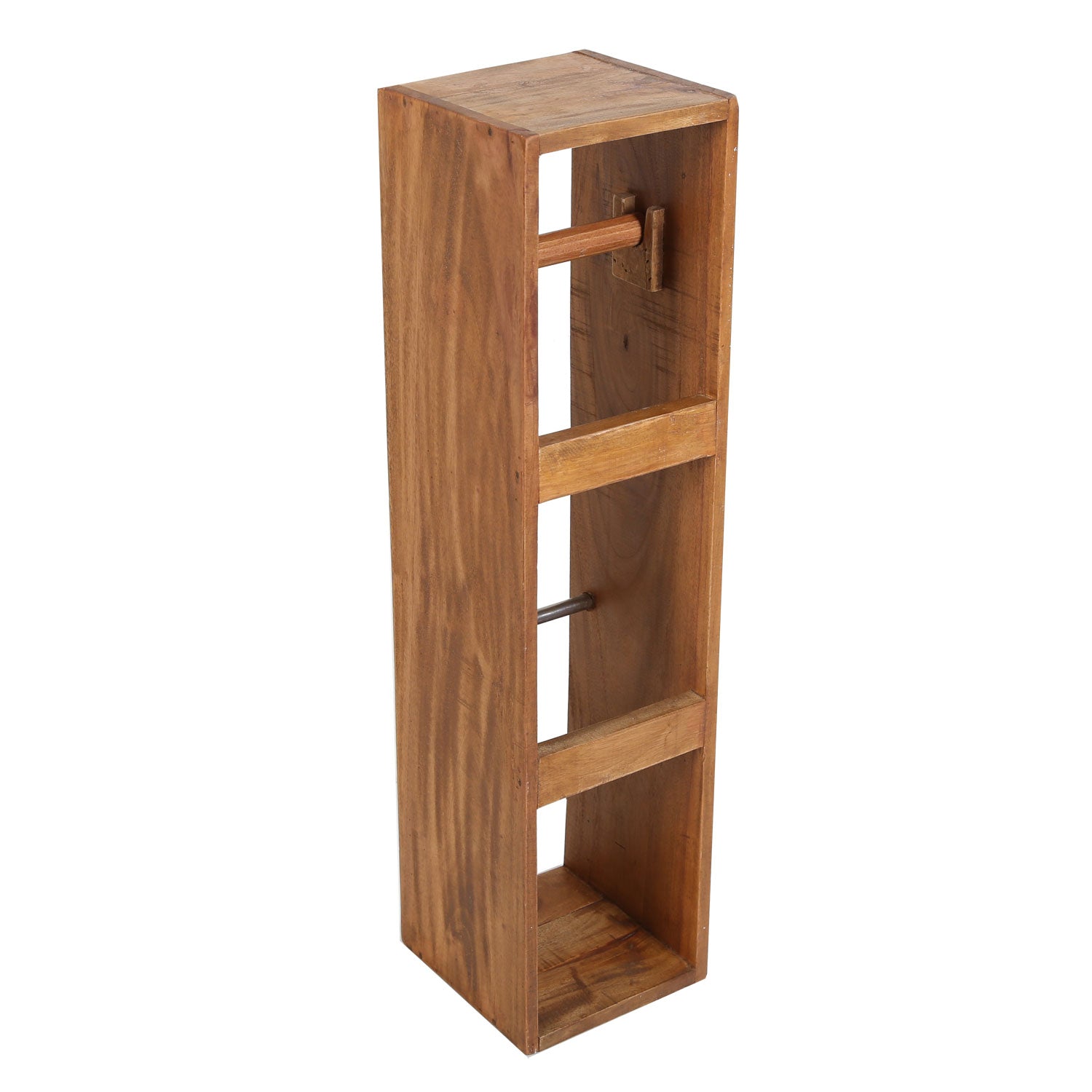 Toilettenpapierhalter Elisa in liebevoller Handarbeit aus recyceltem Teakholz gefertigt. So ist jeder Holz Papierhalter einzigartig, massiv, nachhaltig und versprüht einen Vintage Flair, dem man sich nicht entziehen kann. Der freistehende Toilettenrollenhalter bietet viel Stauraum für die Ersatzrollen.