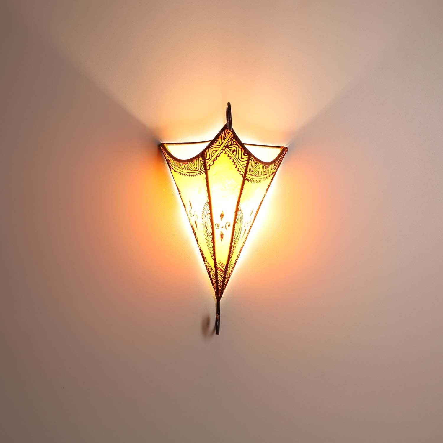 Diese zauberhafte handgefertigte Henna-Wandlampe Mouna aus Ziegenleder ist ein Meisterwerk orientalischer Handwerkskunst.
