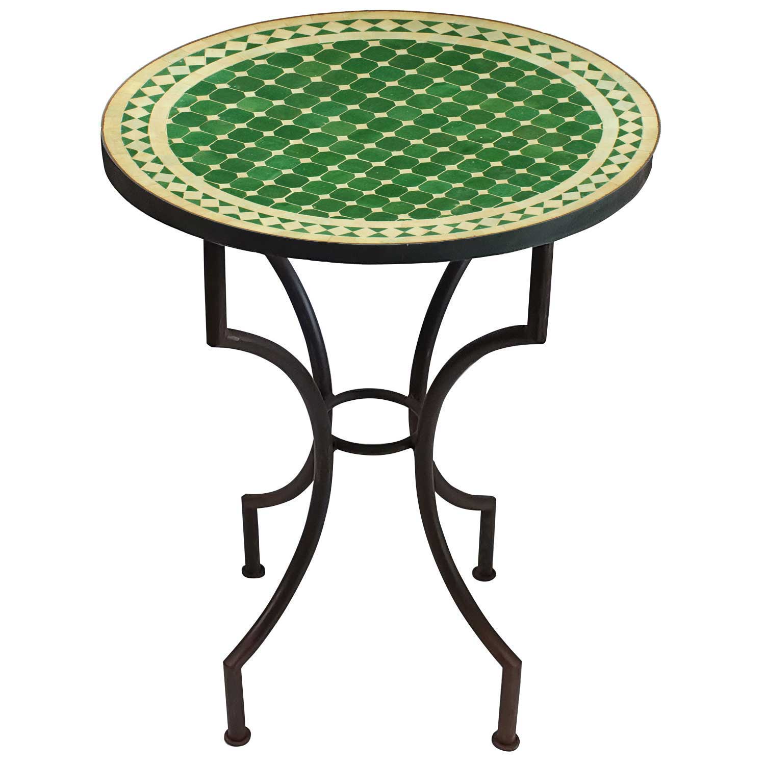 Mosaiktisch aus Marokko - Rund - Grün weiß glasiert - M60-30