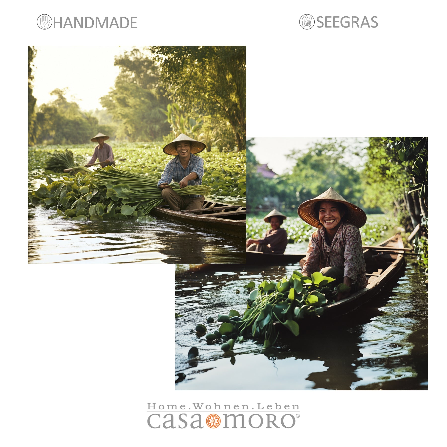 - Material: Handgeflochtene Wasserhyazinthe (Seegras), robust, langlebig und nachhaltig verarbeitet.
