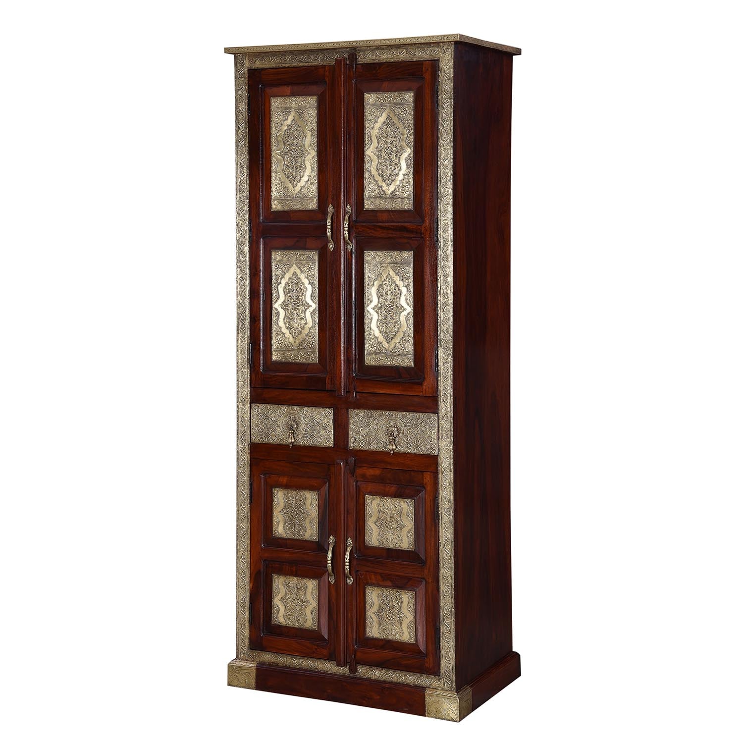 L'armoire orientale Arian en bois de sheesham a été fabriquée à la main avec un grand savoir-faire. La combinaison de la couleur rouge-brun et des applications en laiton doré s'harmonise particulièrement bien !