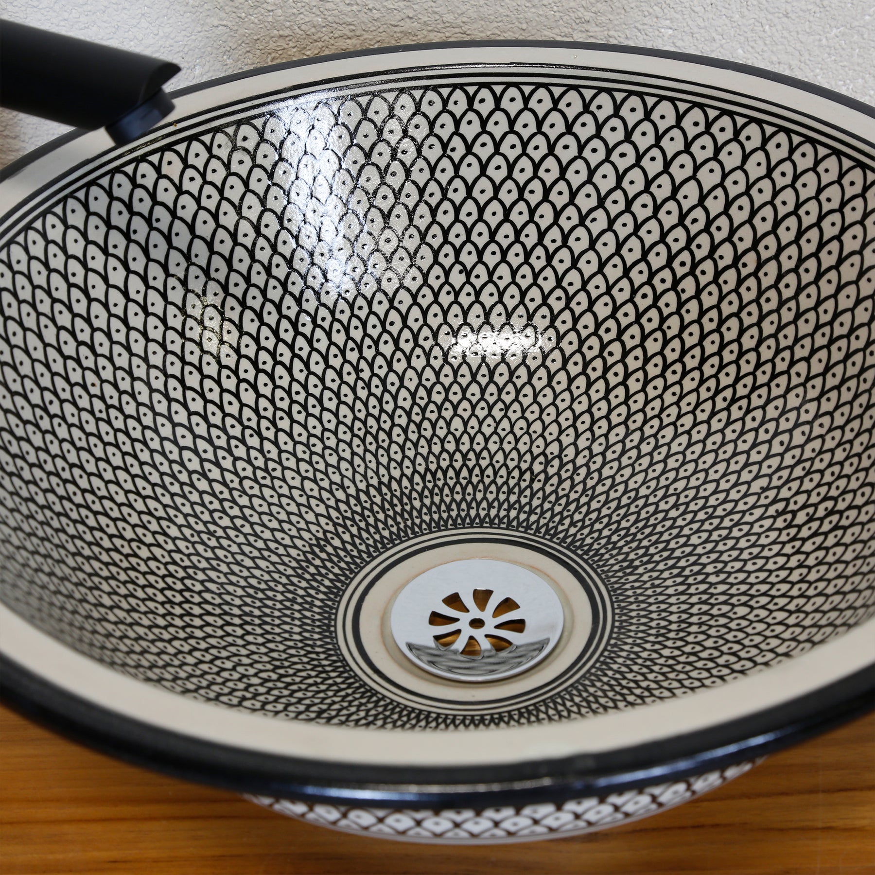 Lavabo en céramique peint à la main, noir – artisanat mauresque de Fès