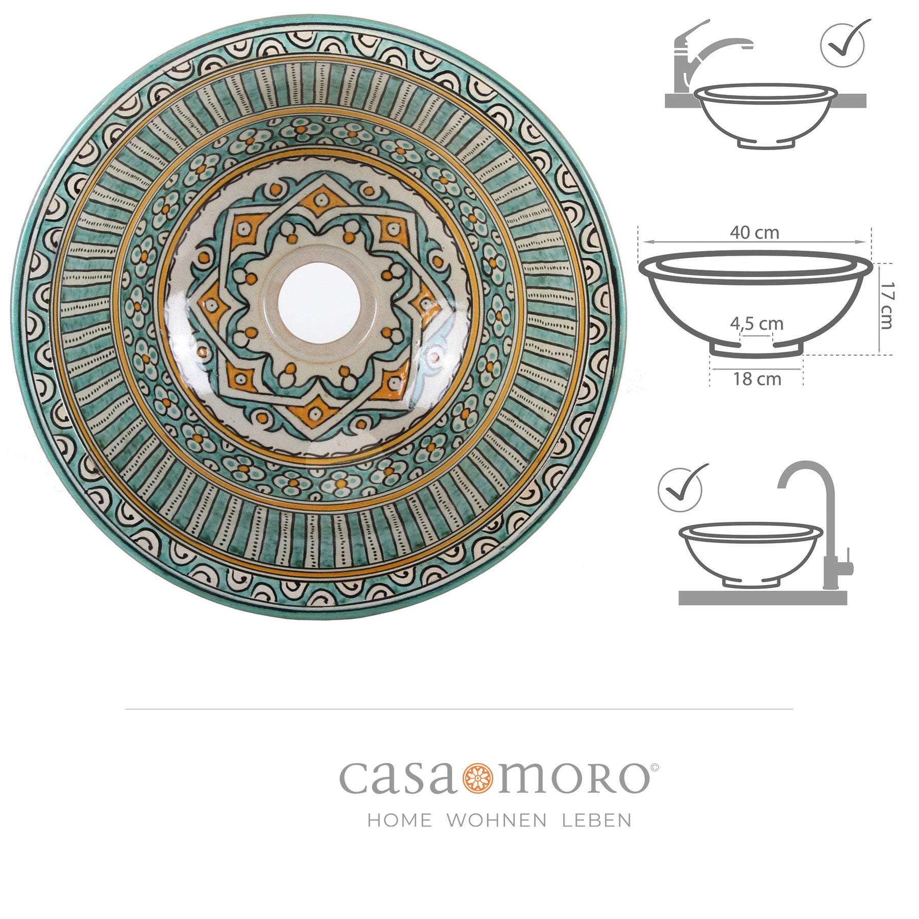 Ce lavabo rond apporte l'art traditionnel de la poterie de Fès directement dans votre maison. Depuis des siècles, Fès est le centre de la fabrication de céramiques mauresques. Aujourd'hui encore, les lavabos y sont façonnés à la main, peints à la main et cuits dans des fours traditionnels. Chaque lavabo est une pièce unique au charme intemporel et à la peinture artistique.