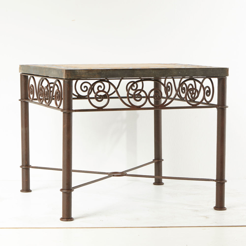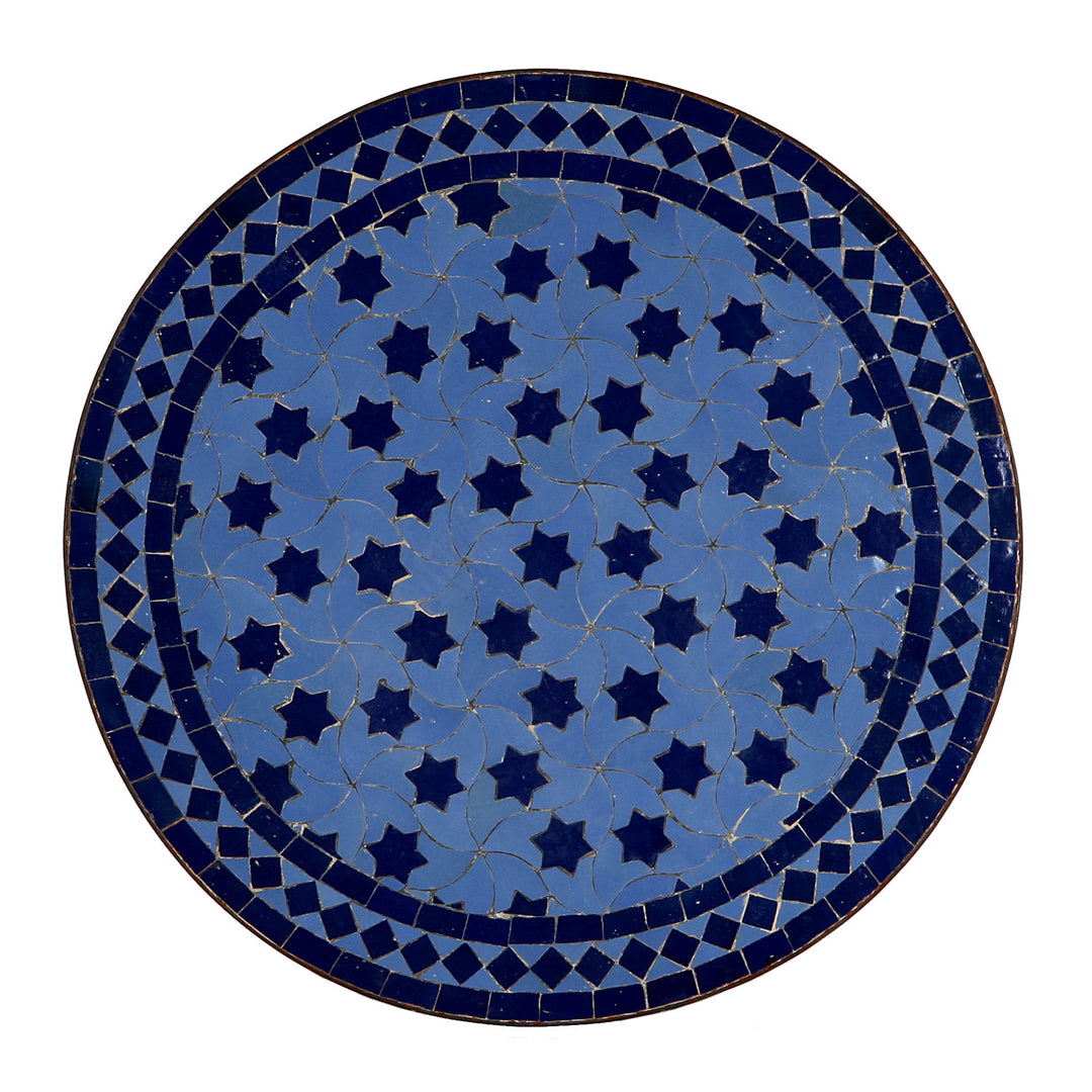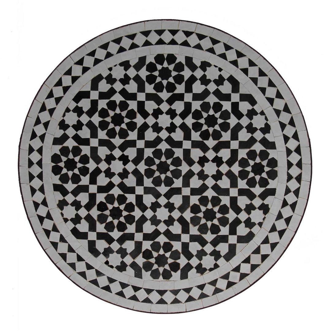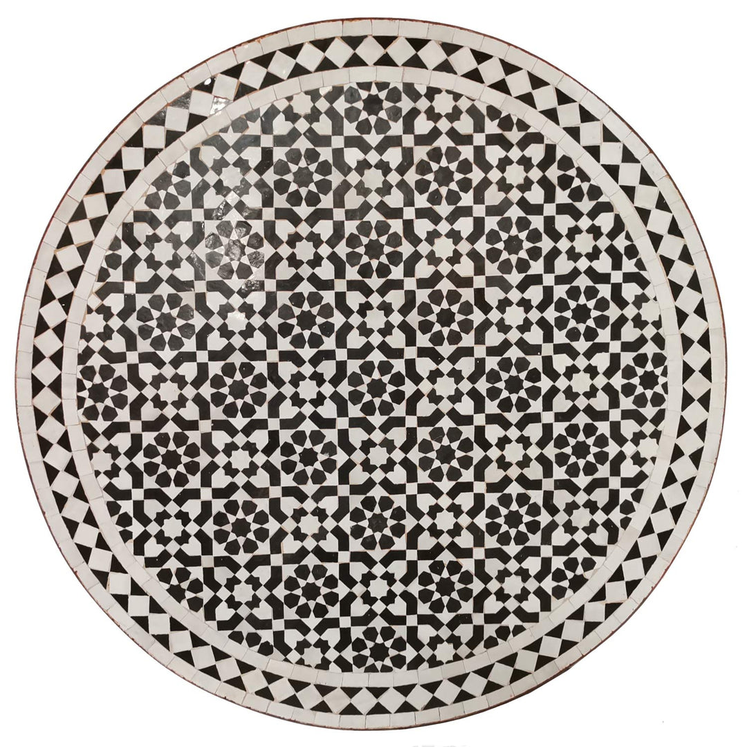 Dans le cas des tables en mosaïque, le plateau est fabriqué à partir de carreaux coupés à la main et assemblés de manière artistique sur une base en béton solide. Le piètement de la table est généralement en fer forgé à la main. L'art de la forge, également profondément ancré dans la tradition marocaine, garantit des structures robustes et durables. Les piètements en fer faits à la main sont soigneusement façonnés, souvent avec des éléments décoratifs incurvés qui complètent harmonieusement le motif fin de la mosaïque du plateau.
