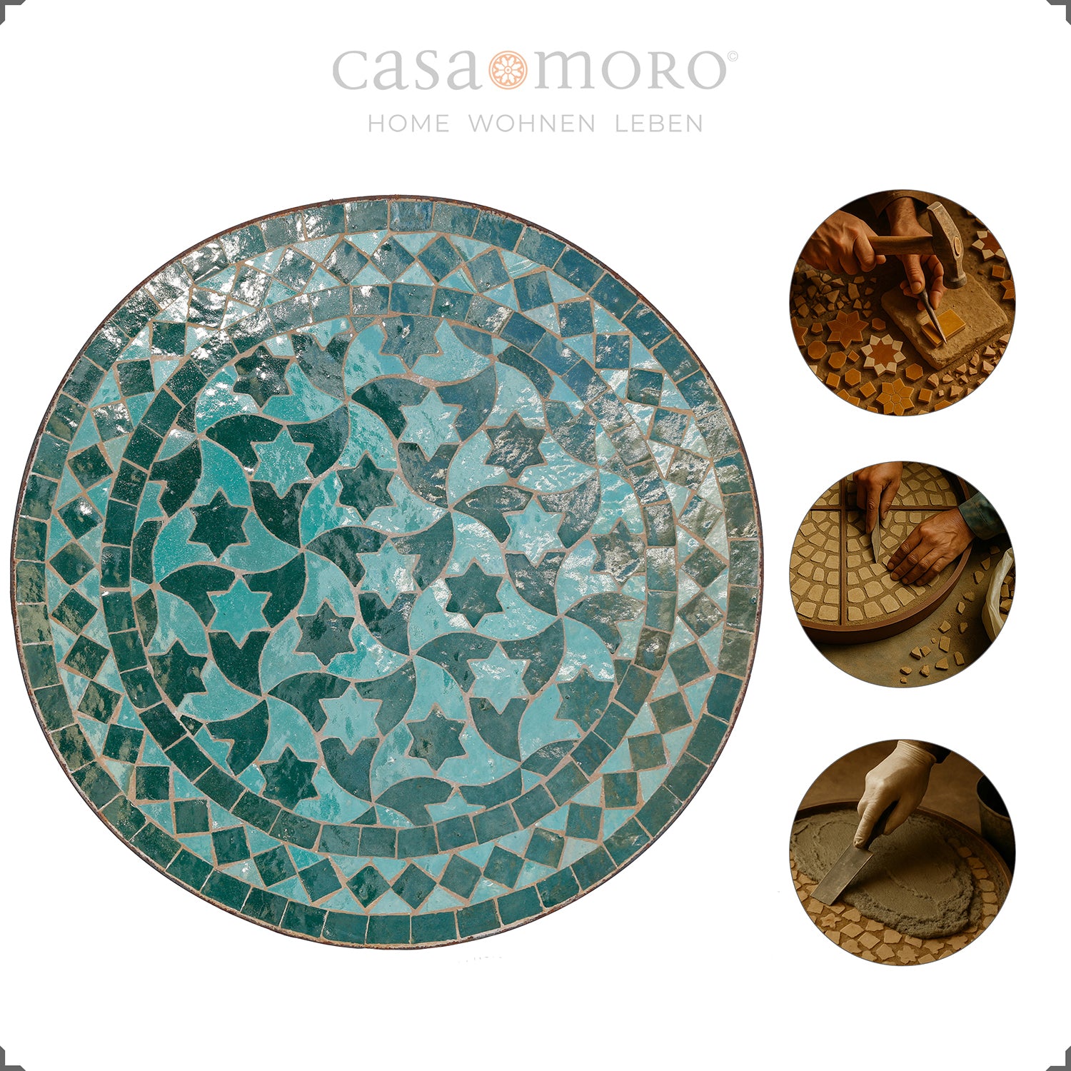Petite table d'appoint 45 cm – Table en mosaïque Zellige dans les tons verts avec une touche orientale