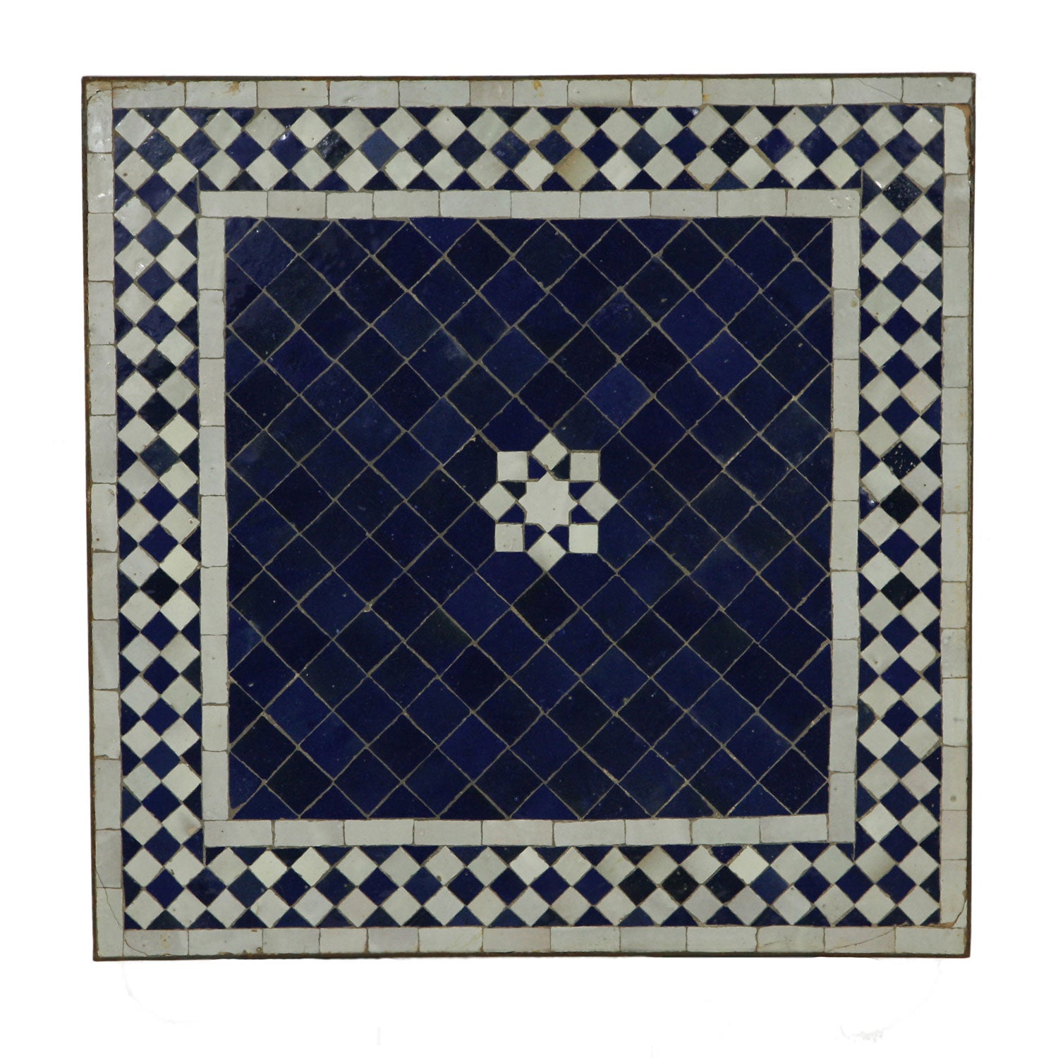 Des losanges superposés et au centre, une étoile. Cette table bistrot mosaïqueest chargée de symboles : un losange posé sur la pointe symbolise l'œil et protège des « mauvais regards ». L' étoile à huit branches représente le sceau du prophète et est donc l'un des motifs les plus importants de l'islam. Il convient également de souligner le travail artisanal : les carreaux Zellige sont posées de manière presque sans joint, très près les unes des autres. La surface est ainsi entièrement vitrifiée. Avec ses couleurs bleu et blanc, cette table apporte une touche méridionale à votre jardin ou à votre terrasse.