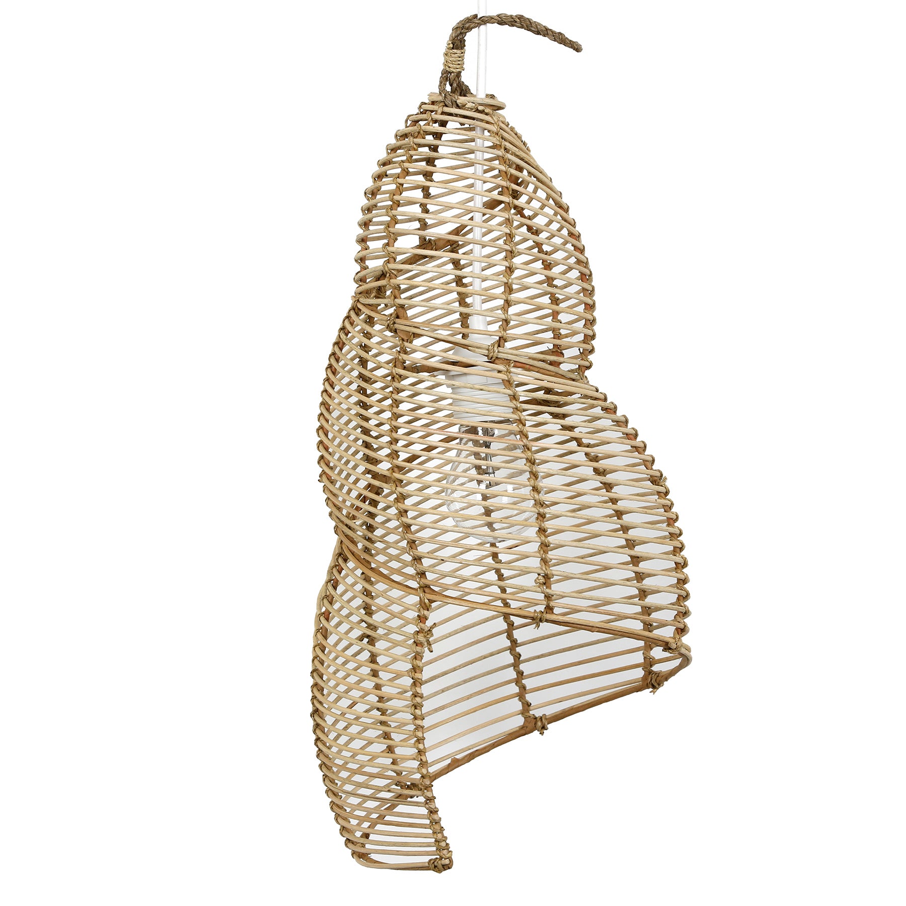 Cet abat-jour en rotin allie la légèreté artisanale à l'élégance naturelle. Son design organique et sinueux laisse passer la lumière à travers le tressage et dessine un motif vivant sur les murs et le plafond – idéal si tu souhaites mettre en valeur ton salon, ta salle à manger ou ta table à manger.