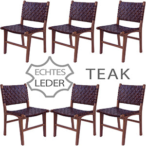 Chaise polyvalente et de salle à manger en teck massif avec assise en bois et cuir véritable tressé – perméable à l'air, stable et élégante.