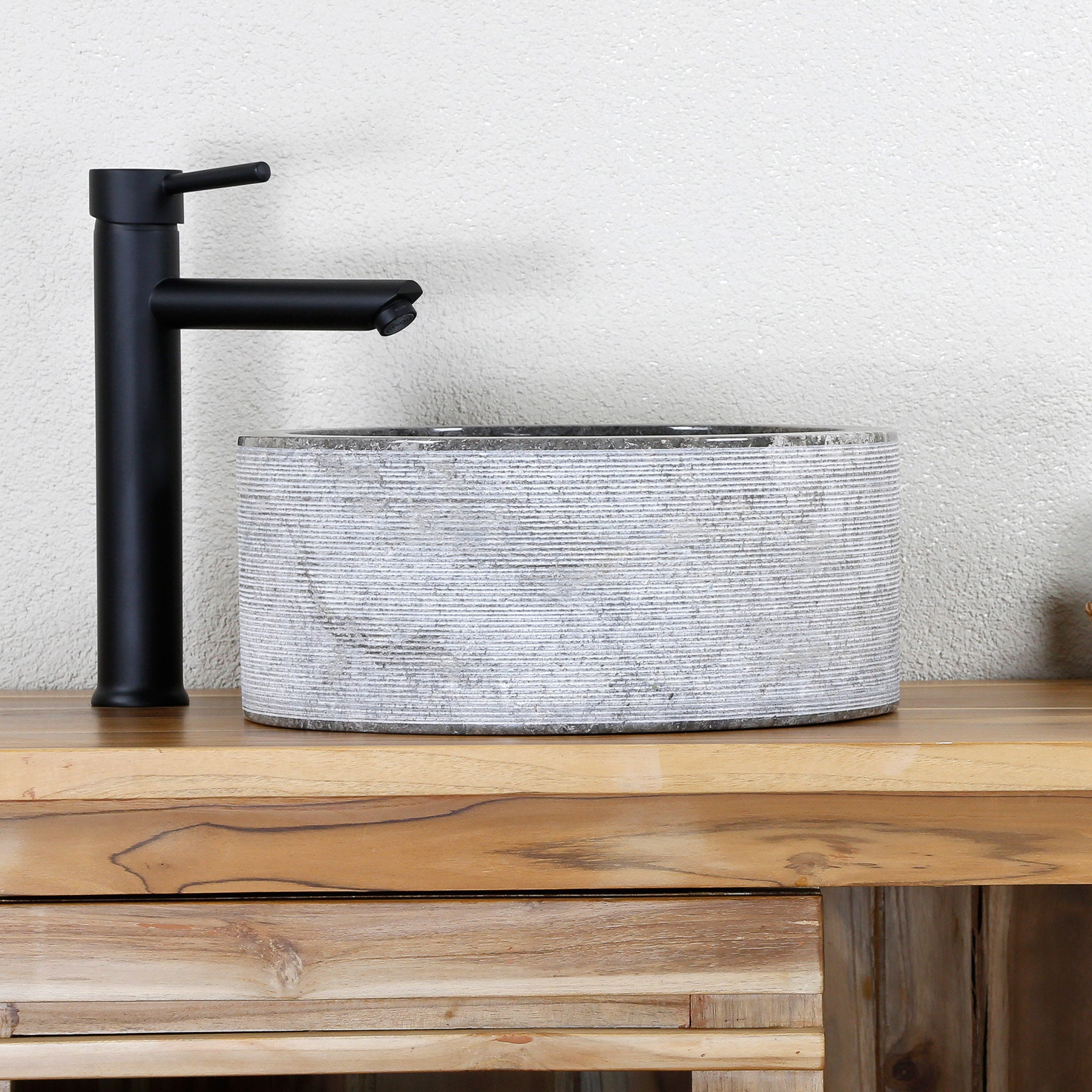 Cette pierre naturelle Lavabo combine un savoir-faire artistique avec une silhouette claire et moderne. La forme cylindrique, la fine structure à rainures à l'extérieur et la surface intérieure polie d'un foncé profond confèrent à la vasque à poser un caractère architectural de haute qualité - idéal pour les salles de bains design, les toilettes d'invités ou les lavabos en bois.