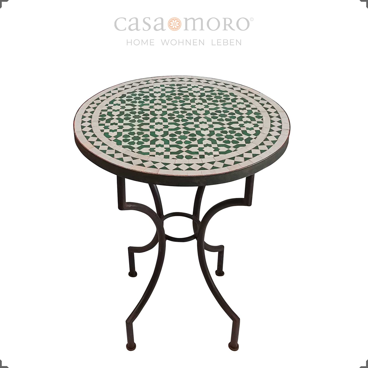Cette table de bistrot fabriquée avec art apporte l'artisanat marocain sur votre terrasse ou dans votre jardin. La mosaïque Zellige vivante en vert et blanc apporte une touche originale pour des moments agréables à deux.