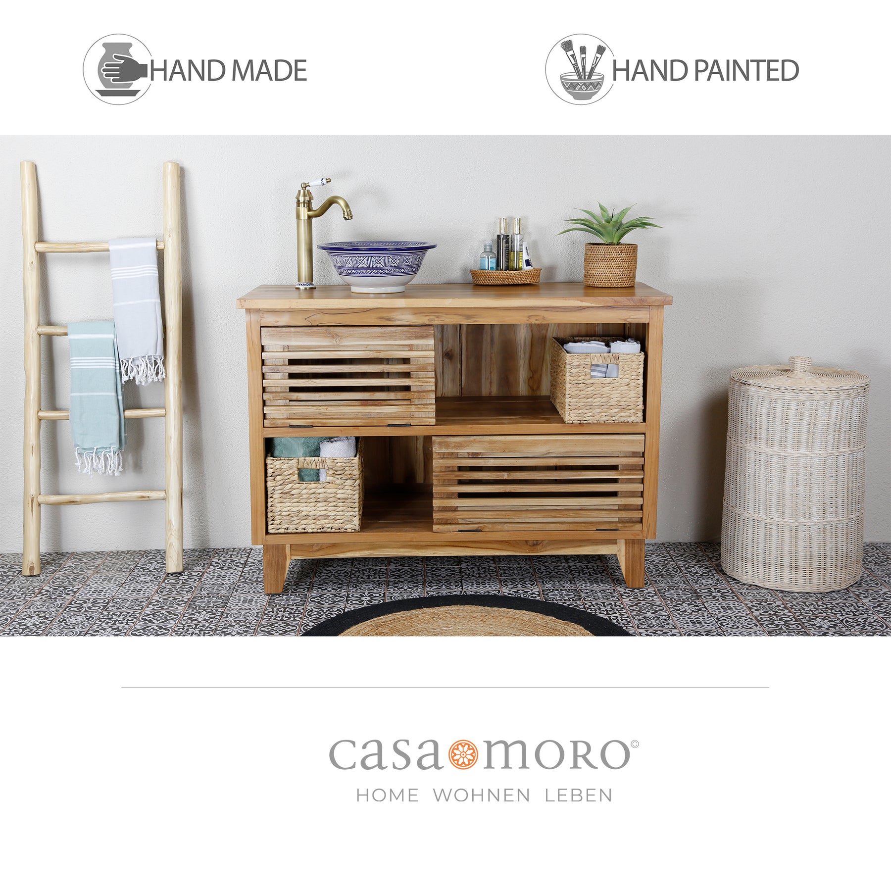 Ce lavabo rond artistiquement conçu apporte la tradition séculaire de la poterie de Fès directement dans votre salle de bains. Depuis des générations, Fès est le cœur de l'art mauresque de la céramique. Aujourd'hui encore, on y fabrique à la main des lavabos uniques, cuits dans des fours traditionnels et peints avec amour. Le résultat est un lavabo à poser en céramique de haute qualité, véritable pièce unique qui embellit n'importe quelle salle de bains.