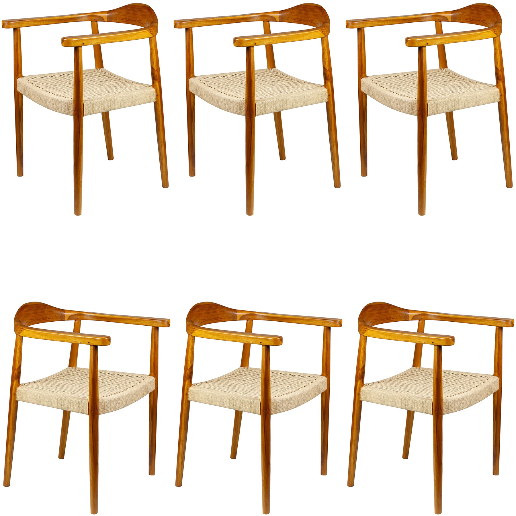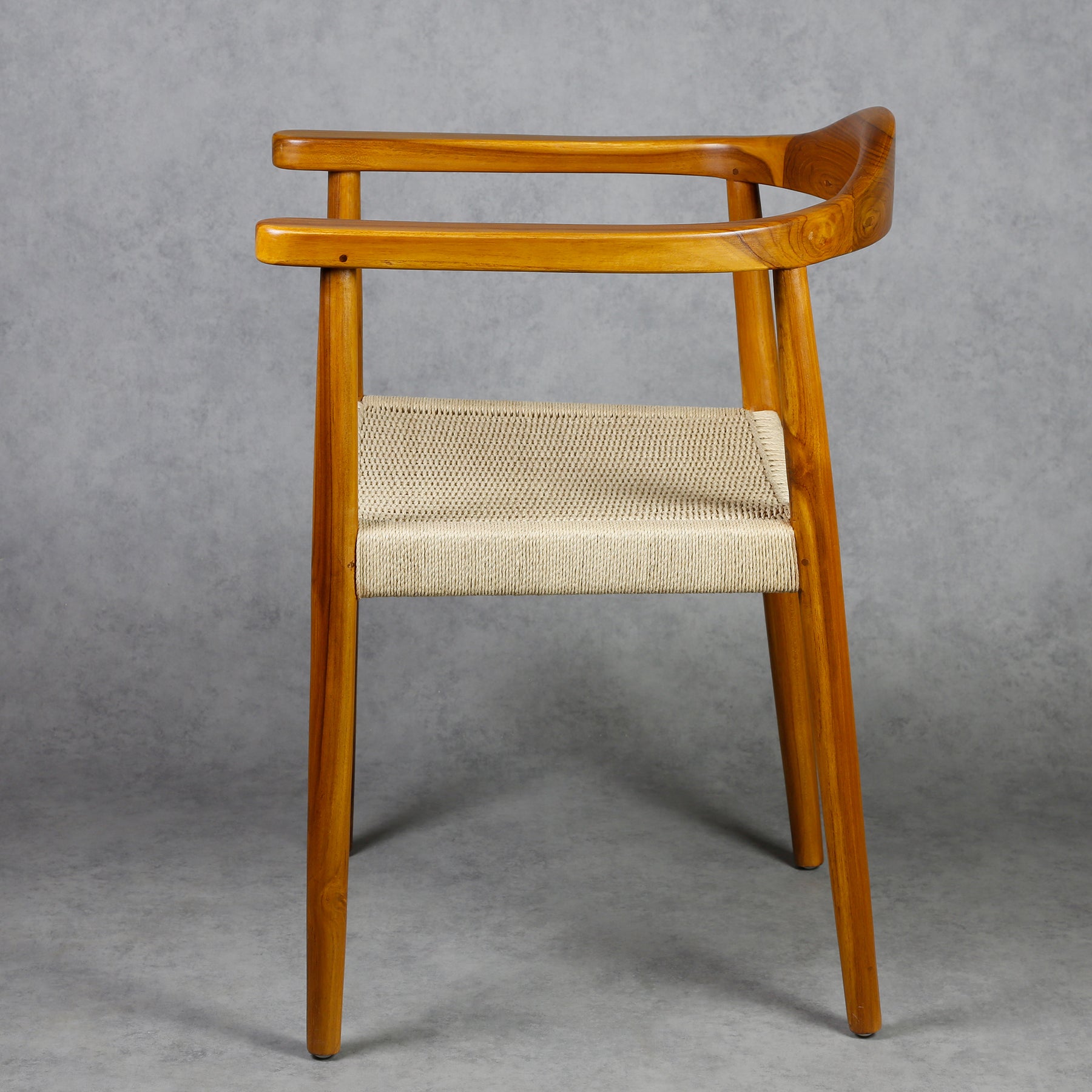 Multifunctionele eetkamerstoel van massief hout (TEAK) met een zitting van vlechtwerk (papieren touw) – ademend, stabiel en stijlvol.