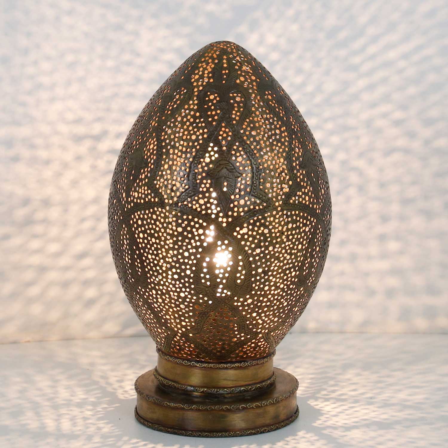 Oosterse koperen lamp uit Marokko, kunstzinnig en zeer gedetailleerd verwerkt. Een prachtig stuk , dat volledig met de hand is gevormd en filigraan is vervaardigd. Door de indrukwekkende lichtschijn geeft deze oosterse lamp elke ruimte een sprookjesachtig karakter en een oosterse sfeer.