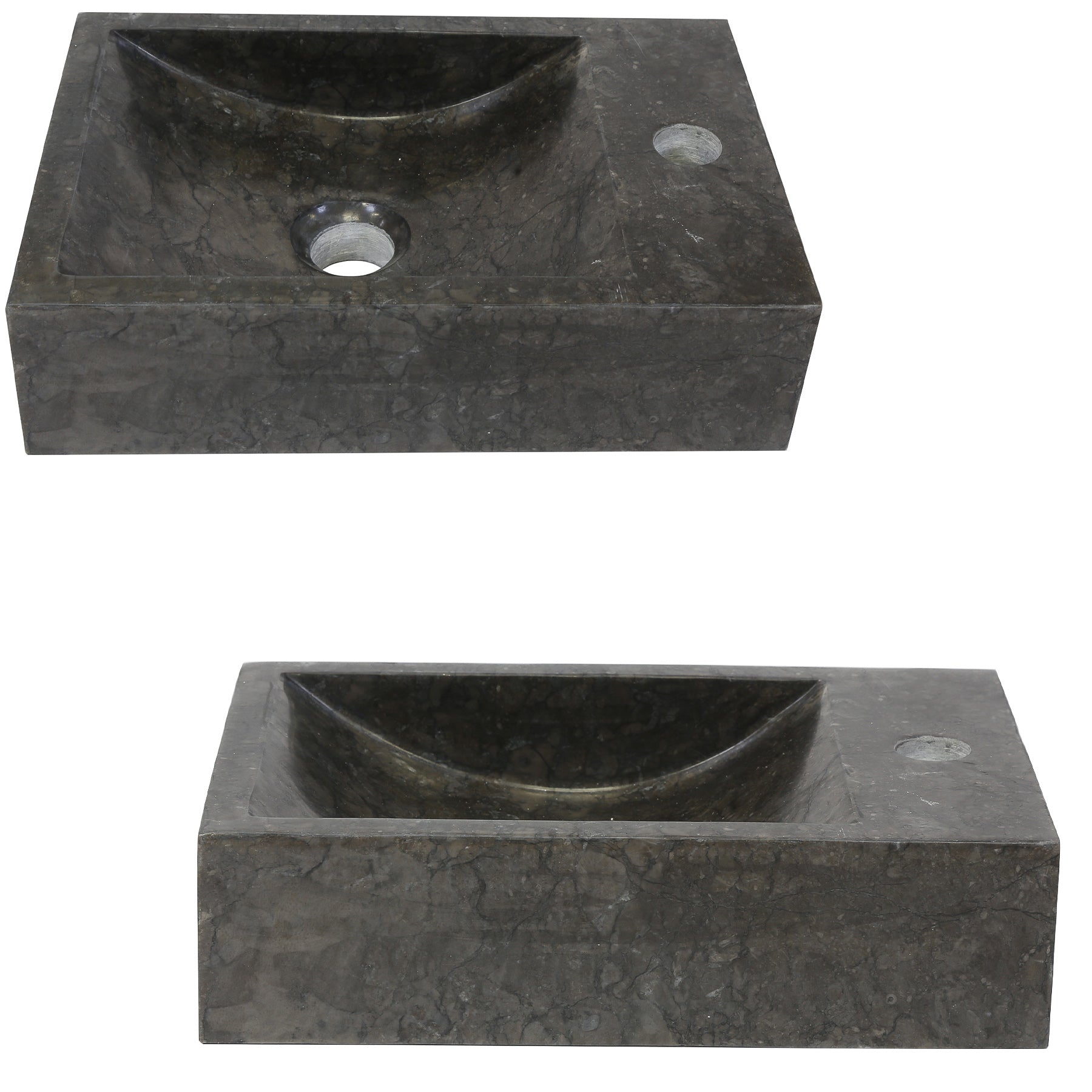 Deze hoekige natuursteen Wastafel combineert de elegantie van donker marmer met een heldere, architectonische vorm. De precieze randen, het zacht gebogen binnenoppervlak en de fijne glans geven de opzetwastafel een elegante, tijdloze uitstraling - ideaal voor moderne badkamers, gastentoiletten of houten wastafels.