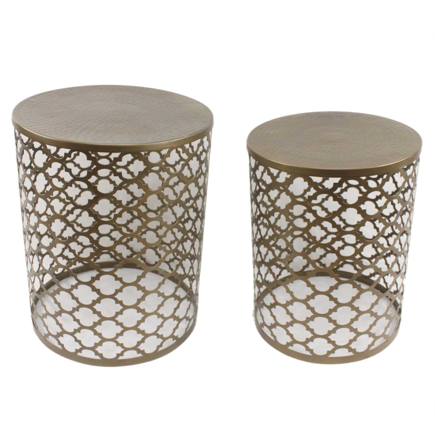 De ronde bijzettafel heeft een frame met onweerstaanbare arabeskvormen en het tafelblad is versierd met hamerslag. Dit metalen meubelstuk is een gegarandeerd hoogtepunt en zal in elke ruimte een blikvanger zijn. Het kan ook worden gebruikt als salontafel, bijzettafel, sofa-tafel, nachtkastje, bloementafel en als telefoonstandaard.