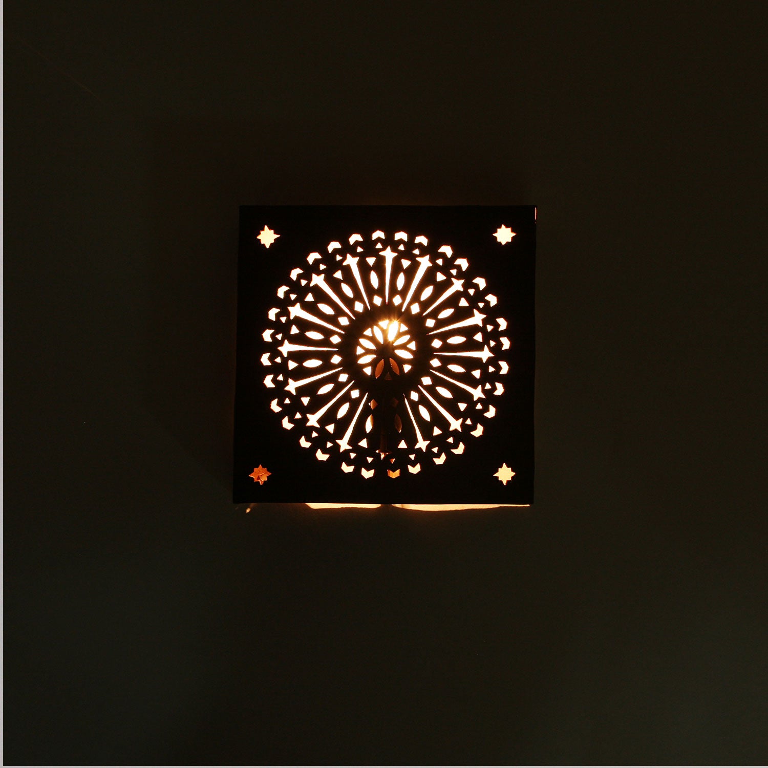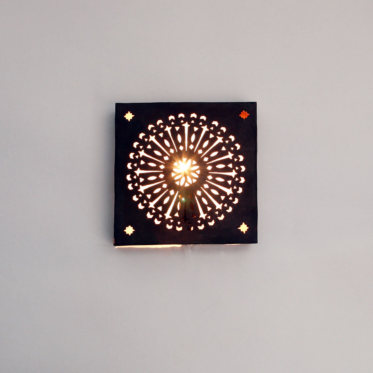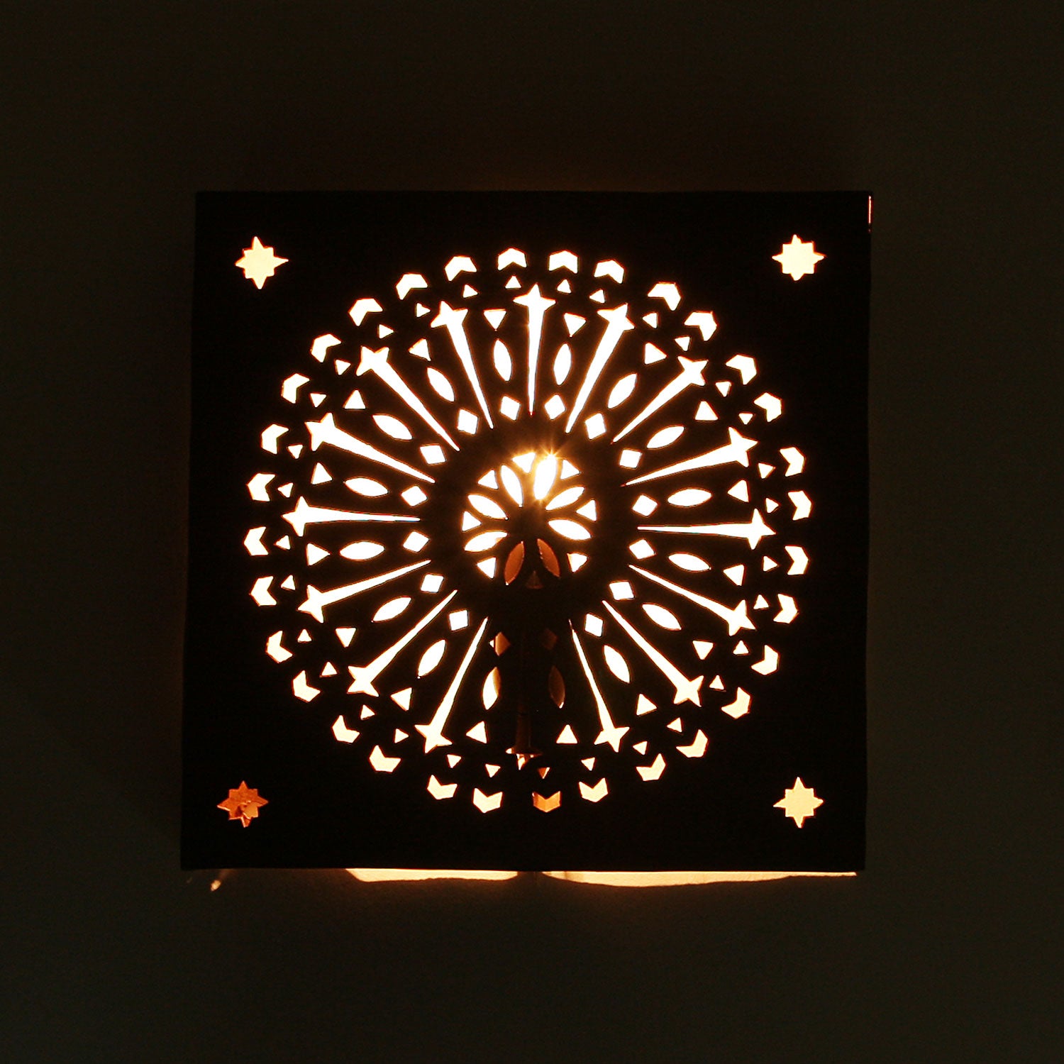 "Marokkaanse wandlantaarns van dit type hebben een unieke licht- en schaduwval. Door de talloze uitsparingen breekt het licht in vele kleine puntjes en creëert zo een dromerige sfeer."