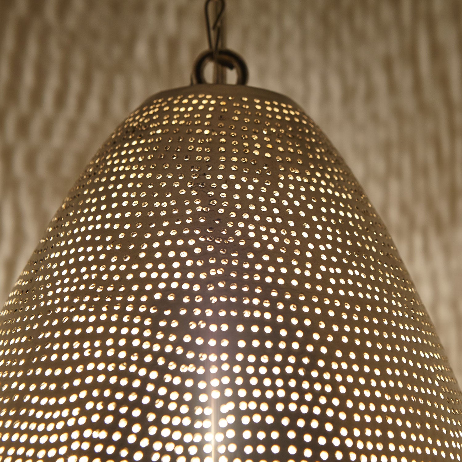 Onze Orient-plafondlamp Saham-D24 is een prachtige oosterse lamp, die zorgvuldig met de hand is vervaardigd. Deze blikvanger uit het Oosten past door het tijdloze, gelijkmatige patroon perfect in elke kamer en ziet er door het echte verzilverde messing bijzonder luxueus uit!