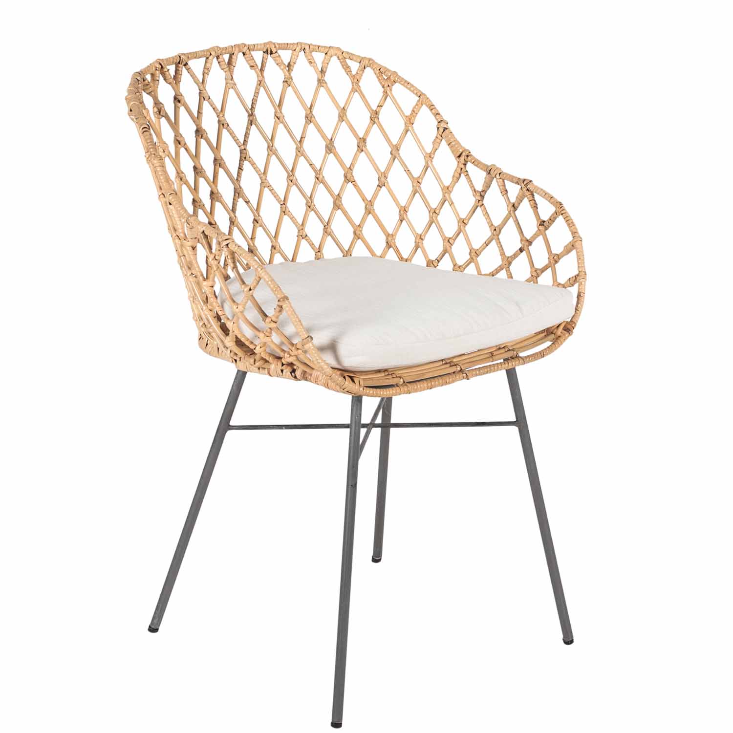 Onze rotanstoel Borneo geeft je huis een elegante vintage look. De rotanstoel met zitkussen is licht, stabiel en natuurlijk. Het metalen frame is gemaakt van gepoedercoat smeedijzer.